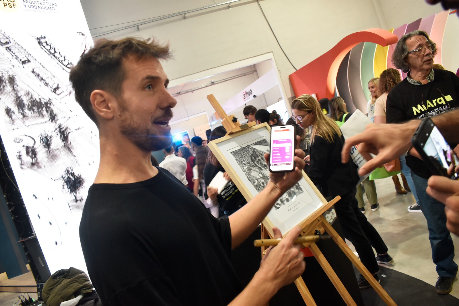 Con un QR al pie de cada maqueta y auriculares disponibles, el stand del CAUPSF ofreció la posibilidad de conocer más detalles sobre estas obras, la importancia de este certamen internacional, y el recorrido de nuestros profesionales para llegar a representar al país en el mismo.