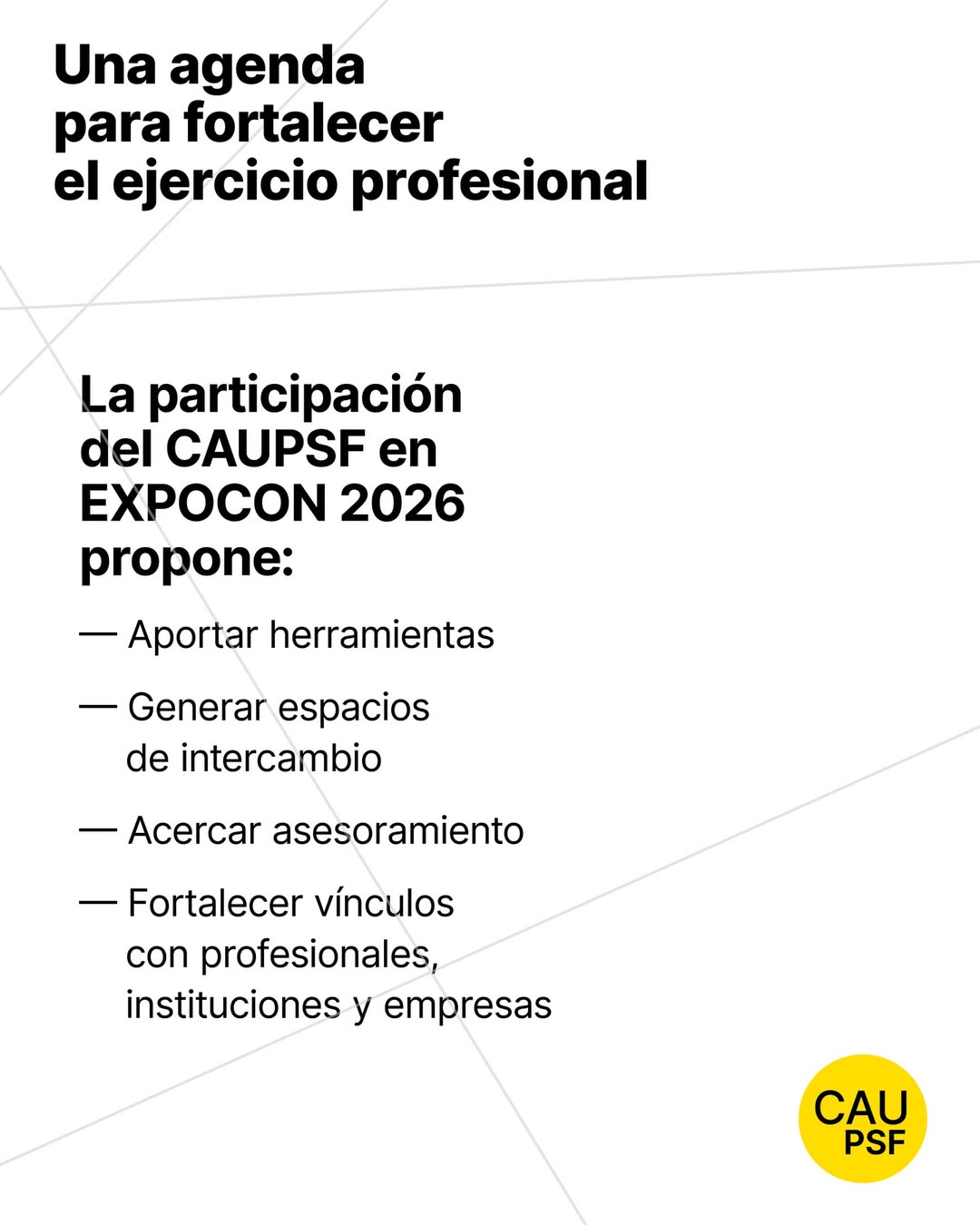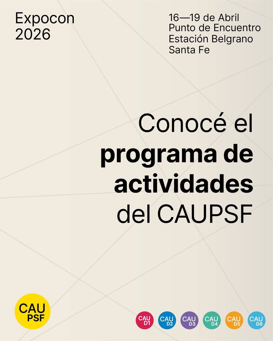 Del 16 al 19 de abril, el Colegio de Arquitectura y Urbanismo de la Provincia de Santa Fe participará de EXPOCON 2026 en la Estación Belgrano de la ciudad de Santa Fe con una agenda de actividades orientada a la promoción de la profesión, el ejercicio profesional, la reflexión disciplinar y los concursos.