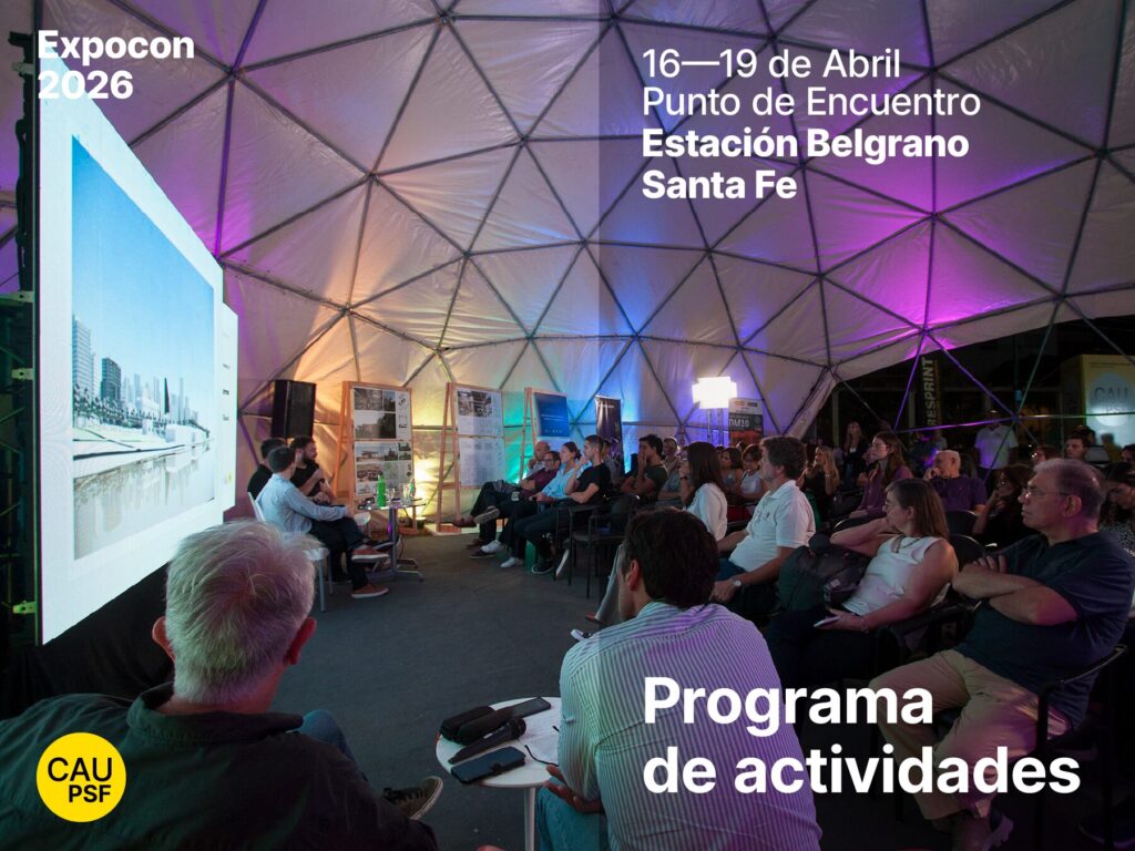 Del 16 al 19 de abril, el Colegio de Arquitectura y Urbanismo de la Provincia de Santa Fe participará de EXPOCON 2026 en la Estación Belgrano de la ciudad de Santa Fe con una agenda de actividades orientada a la promoción de la profesión, el ejercicio profesional, la reflexión disciplinar y los concursos.