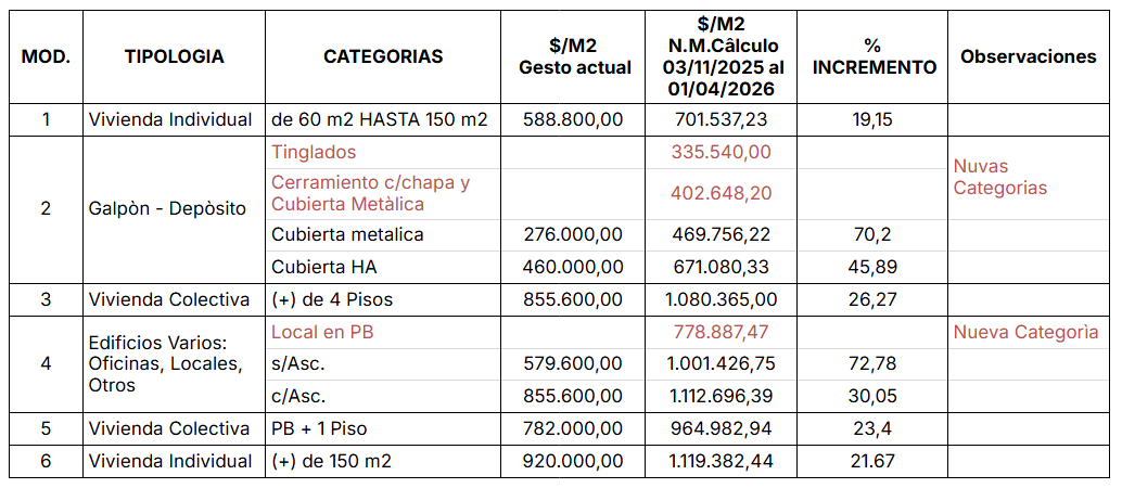 Con la incorporación de 6 modelos de cálculo acordados por los tres Colegios en base a cómputos y presupuestos reales, el Nuevo Motor de Cálculo permite realizar una actualización segmentada y contemplar las diferentes categorías establecidas por la Ley Araya.